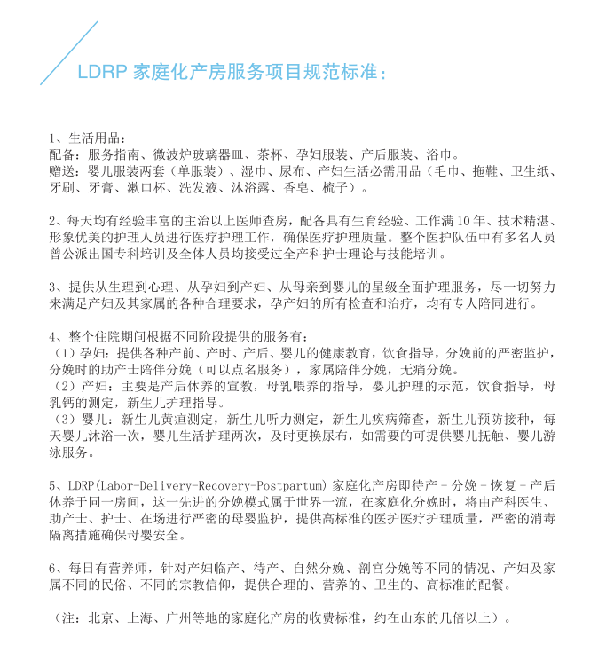 一体化产房服务项目规范标准