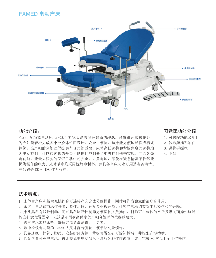 ZYWIECKA FABRYKA SPRZETU SZPITALNEGO FAMED S.A.成立于1860年,是欧洲最大的医疗设备生产商之一,一百余年的历史使其拥有世界先进的生产技术和强大的研发和科研机构。产品线十分丰富,有监护病床、电运综合手术床、产床、牙科椅、医用器械柜等系列产品。FAMED产品均已通过国际CE、ISO-9001、ISO-13485等多家管理体系的认证,并通过了欧盟的ISO-14001环境管理体系认证。